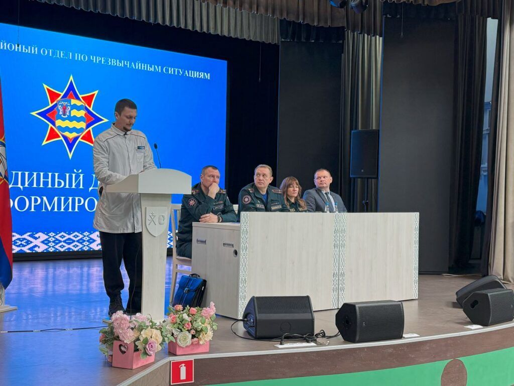 Главной темой встречи стало предупреждение чрезвычайных ситуаций. С докладом выступил заместитель начальника главного управления надзора и профилактики МЧС Республики Беларусь — начальник управления нормативно‑технической работы и предупреждения чрезвычайных ситуаций Александр Шикуть.