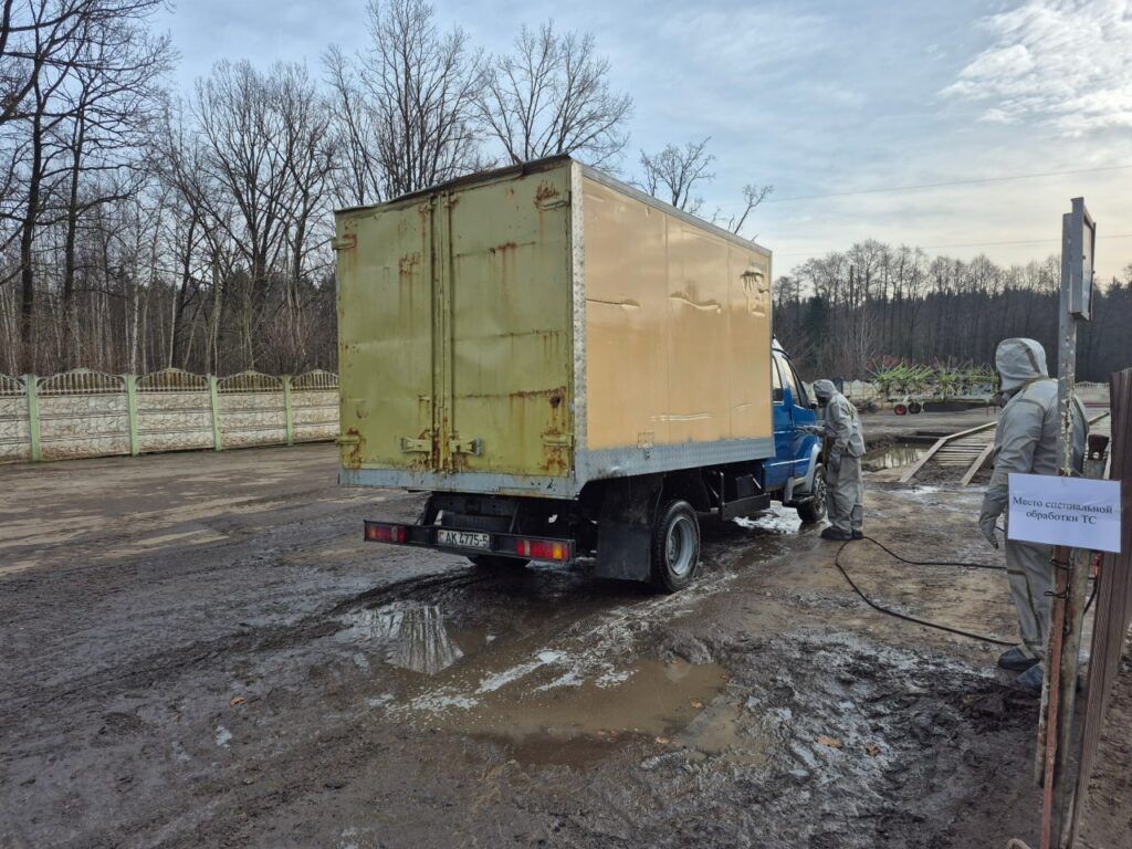 Заключительный этап — проверка станции обеззараживания техники на базе Смолевичского райагросервиса. Автомобиль прошел дозиметрический контроль и регистрацию — отработка действий при возможном радиационном загрязнении.