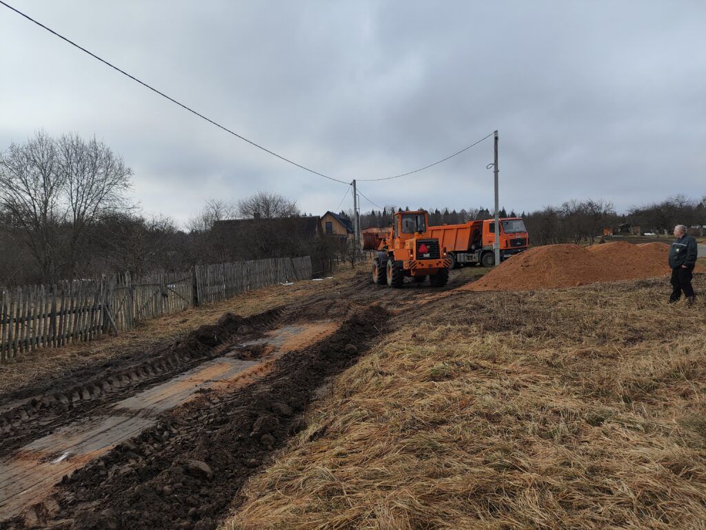Дорожный марафон на Смолевиччине не сбавляет темпов: в деревне Узбережье приводят в порядок улицы