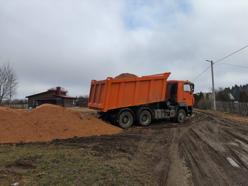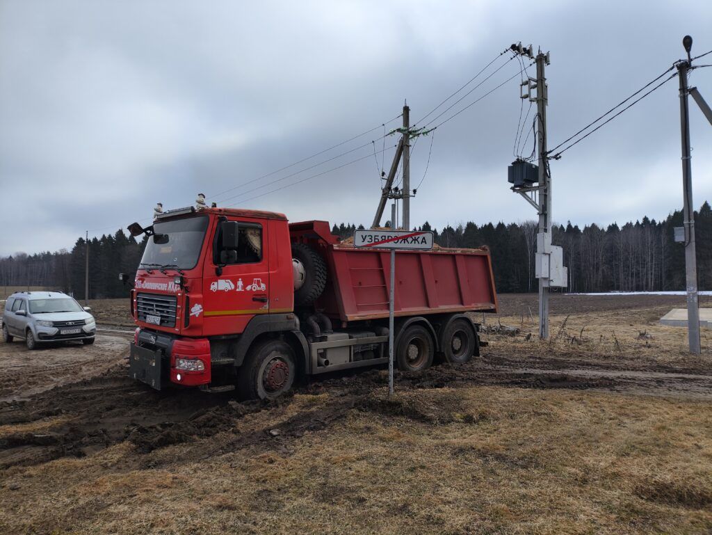 На объекте задействовано 5 единиц техники: 4 автомобиля МАЗ (один из них пришел из ДРСУ №123, чтобы помочь коллегам) и 1 погрузчик.