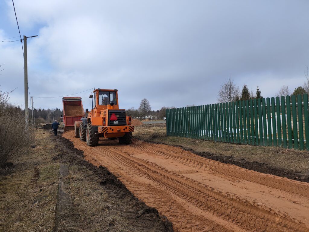 Для восстановления качественного проезда коммунальщики используют проверенную технологию: сначала на поврежденном участке срезается грунт, подсыпается песок, затем завозится достаточное количество песчано-гравийной смеси и с помощью спецтехники производится грейдирование и формирование профиля дороги.