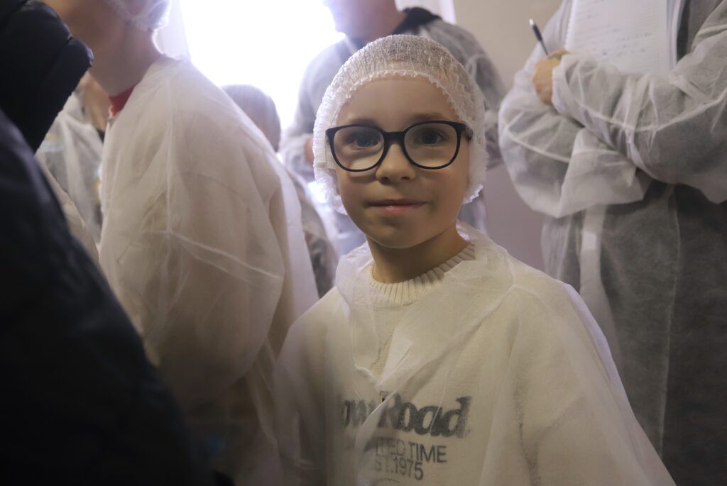 Первый шаг экскурсии – перевоплощение. На пищевом предприятии действует строгий «дресс-код» и ребята с удовольствием его примеряют.