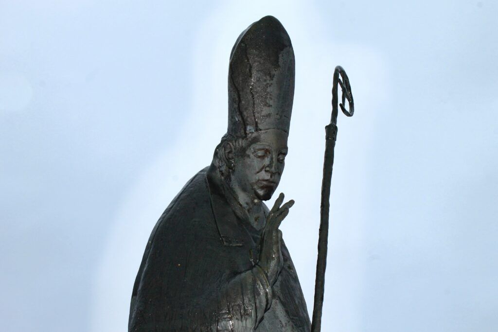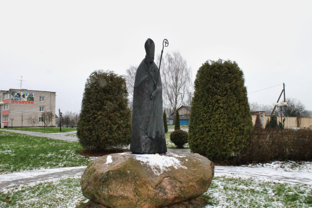 Идея установить памятник святому Валентину в Смолевичах принадлежит одному из прихожан и его супруге. Интересно, что если храмов, посвященных этому святому, в мире насчитывается всего четыре, то памятников – лишь два. Считается, что первый открыли в Москве 14 февраля 2008 года, а второй – ровно через год – появился у нас, в Смолевичах. Но он заметно отличается от московского. Святой Валентин в Москве изображен молодым человеком в римской тоге и с ключами от сердец, а наш Валентин – зрелый епископ. Его голова склонена, глаза закрыты, словно он вслушивается в просьбы людей. Правая рука поднята в благословляющем жесте – спокойном, мягком и очень выразительном.