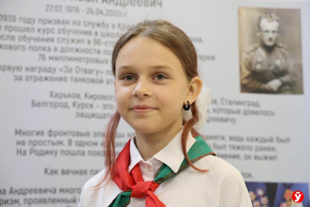 — Я горжусь своим прадедушкой Иваном Потапчиком и бабушкой Натальей, — рассказала Аня. — Прадедушка ушел на фронт, когда ему не было и 18 лет, приписал себе год, чтобы пойти защищать Родину. Он получил медаль «За отвагу» в 1942 году, освобождал Харьков, Днепропетровск, Сталинград, Курск, Белгород. Был ранен, в руке остался осколок. На войне встретил бабушку — она была призвана в армию в 1943 году. Они поженились в Вене, а после победы переехали в Смолевичи, где родили троих детей.