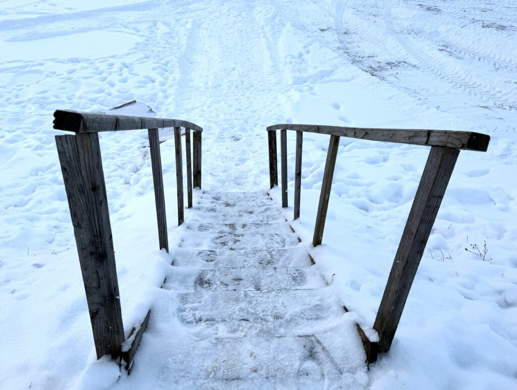 Рядом с трамплином установили лестницу и ограждение — все для безопасности маленьких и больших любителей зимних приключений.