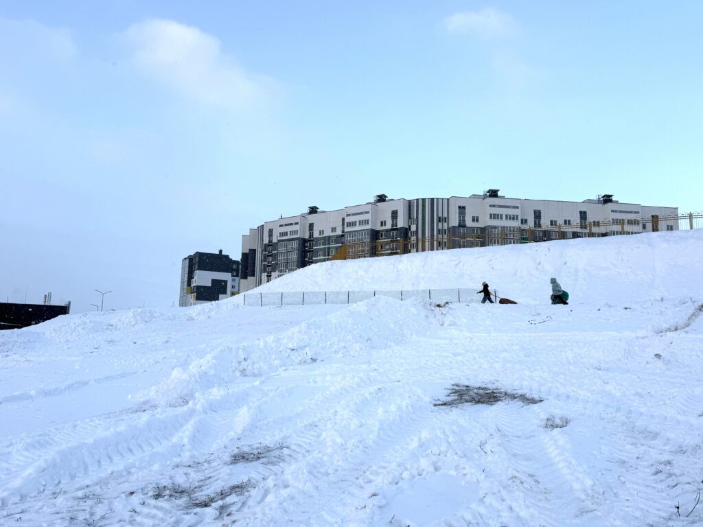 В нашем городе появилось новое место для зимних забав. Большая, а главное — безопасная снежная горка расположилась между торговым комплексом «Клевер» и поликлиникой №2.