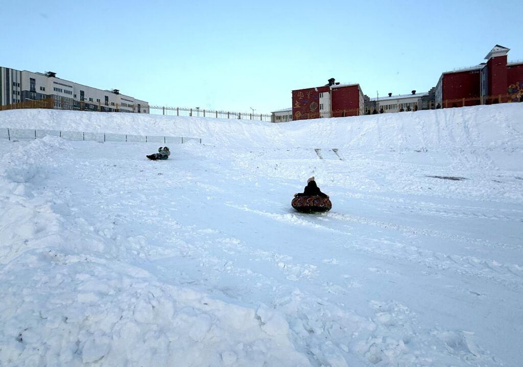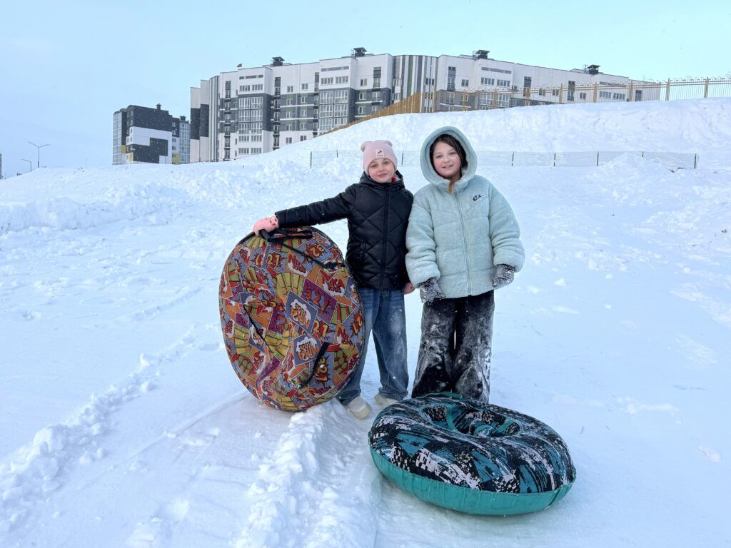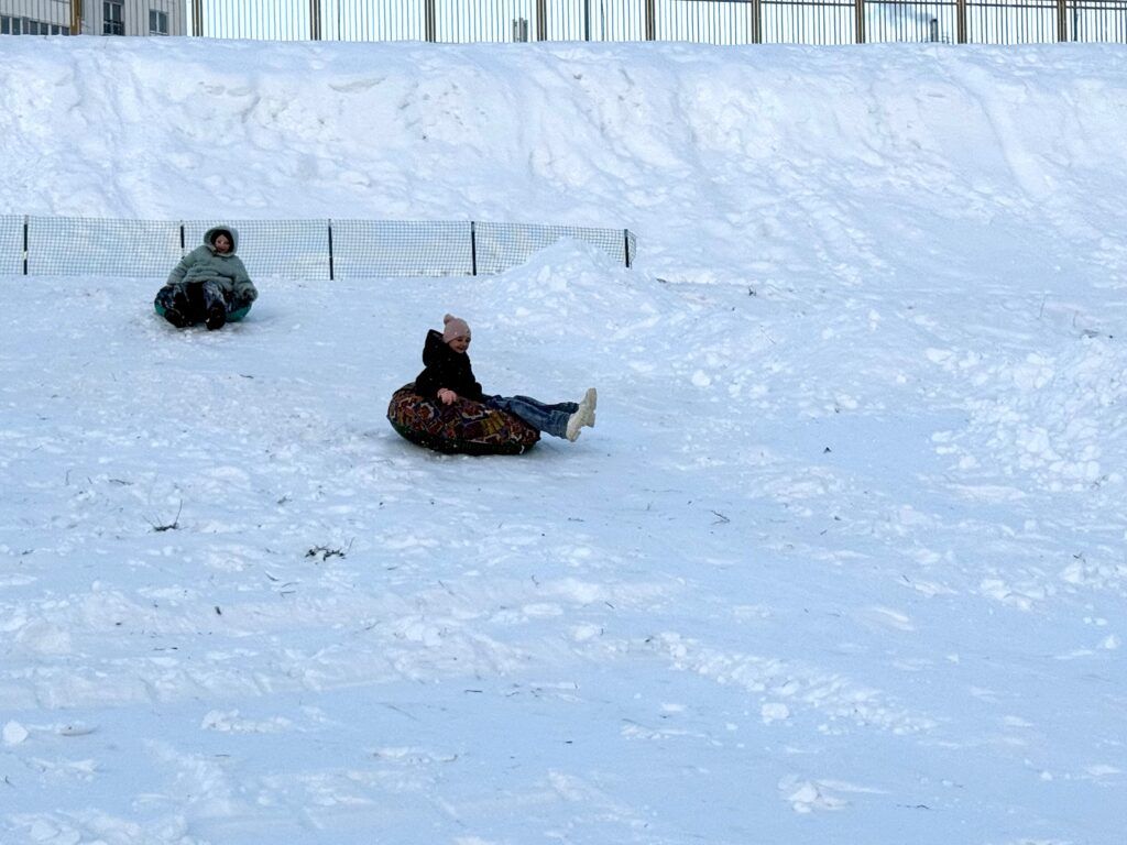 Идею подарить детям зимнюю радость предложил завод «Дорэлектромаш». Руководство района поддержало инициативу, и всего через несколько дней здесь выросла белоснежная трасса для ватрушек.