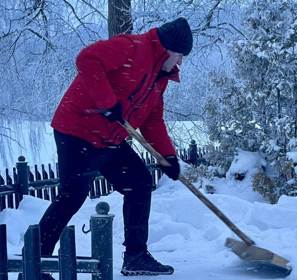 Дружная мужская команда очистила от снега и льда братскую могилу советских воинов и партизан, которая расположена на въезде в поселок.