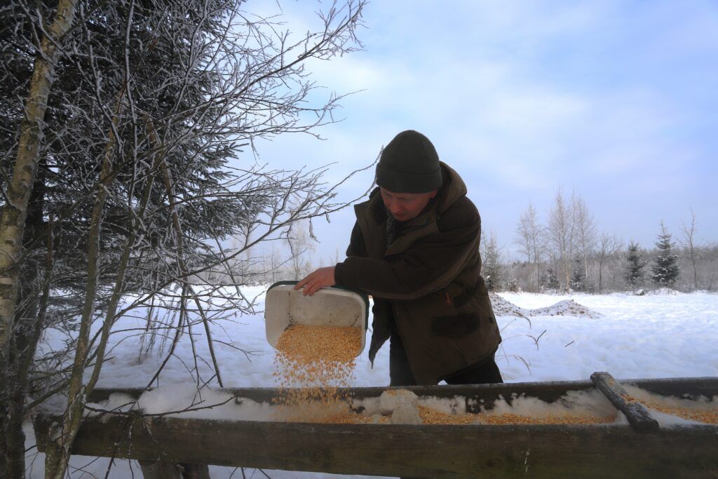 В меню – морковь и кукуруза. Рассказываем, как в Смолевичских лесах подкармливают диких животных