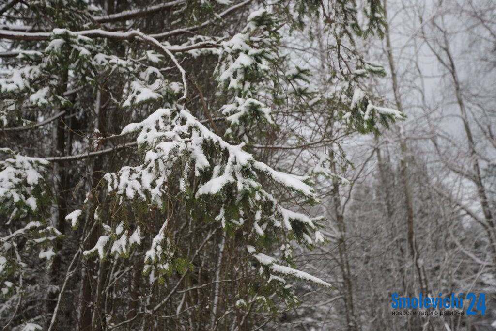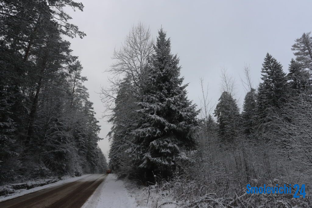 Белоснежные пейзажи попали в наш объектив недалеко от деревни Шабуни. Посмотрите, как красиво украсил зеленые ели первый снегопад.