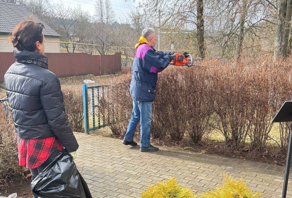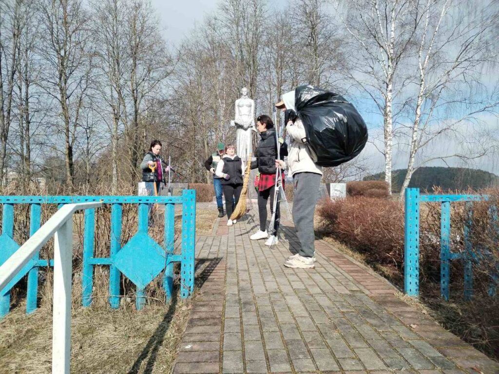 — Нас собралось 10 человек в возрасте от 35 до 56 лет, — рассказывает староста деревни Анна Лицкевич. — Мы убрали листья и подстригли кусты на территории нашего мемориала, а потом перешли к уборке берега.