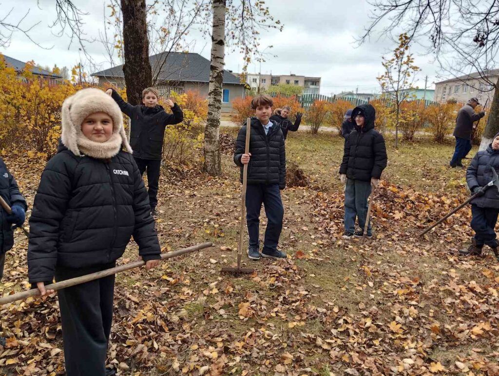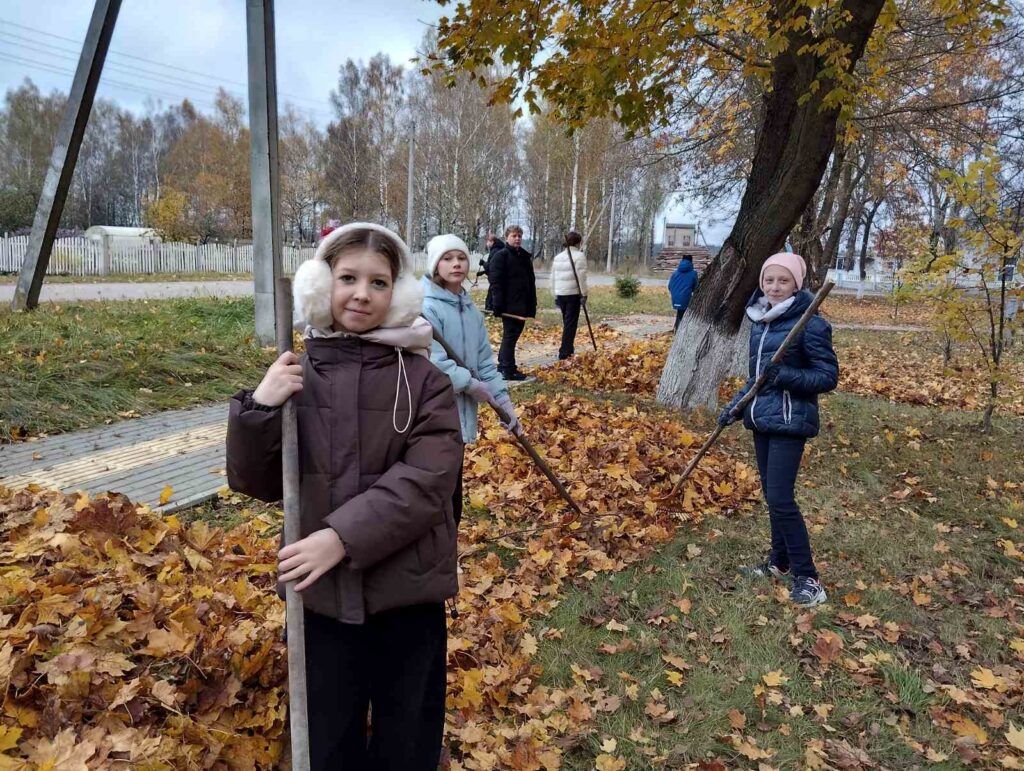 Активное участие в уборке пришкольной территории приняли учащиеся. Мальчишки и девчонки, вооружившись граблями и метелками, занимались уборкой листьев. Работа несложная, зато какая полезная. Участок у школы засиял чистотой и ухоженностью.