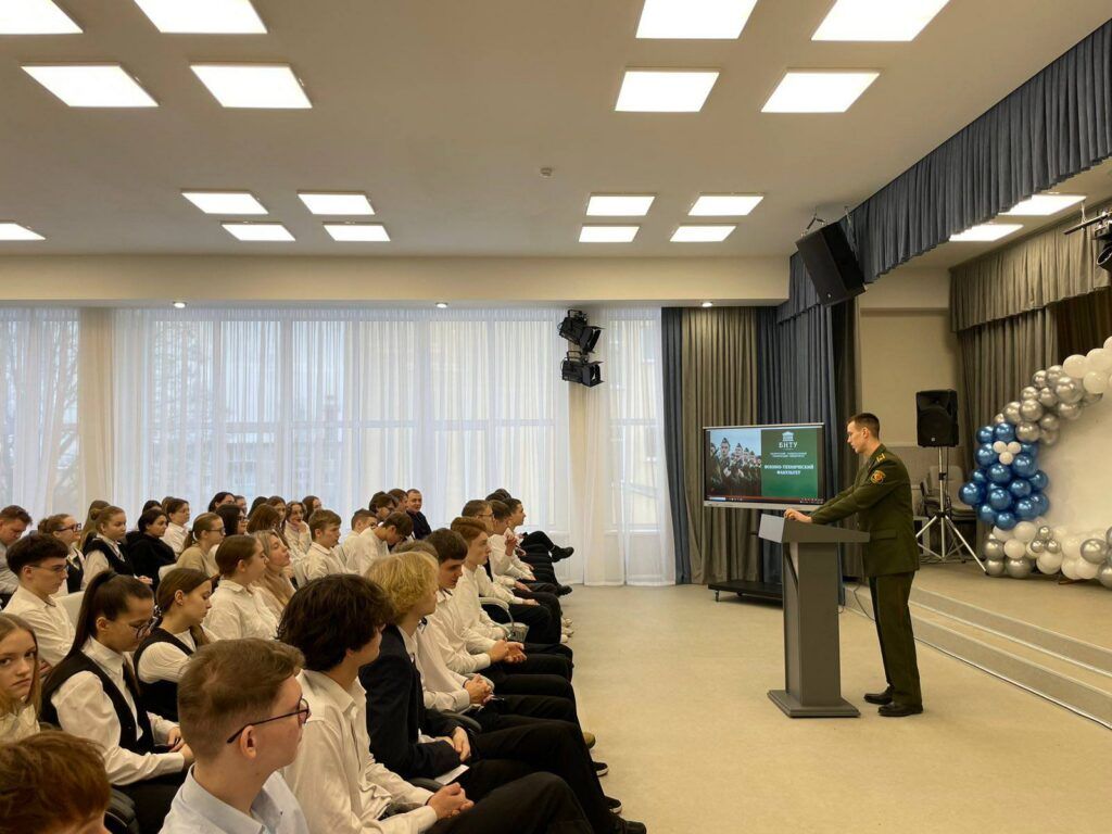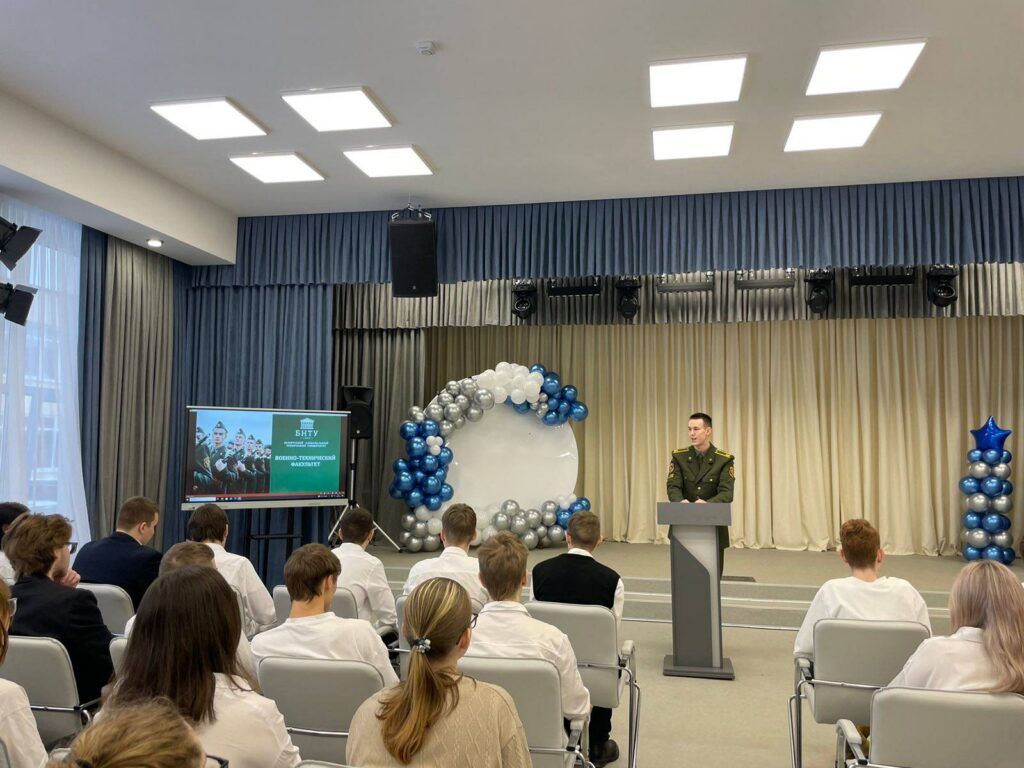 Курсант военно-технического факультета БНТУ Артем Кудин встретился со старшеклассниками гимназии города Смолевичи. Гость в погонах рассказал ребятам о специальностях, истории факультета и преимуществах военной службы.
