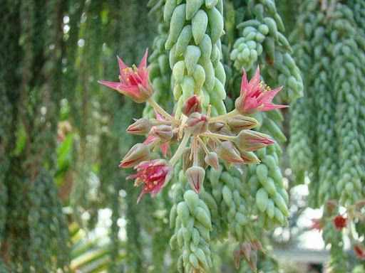 Седум Моргана – необычный суккулент с длинными свисающими побегами. По форме он напоминает хвост ящерицы и особенно эффектно смотрится в подвесных кашпо. Растение предпочитает светлые и теплые помещения, нуждается в поливе лишь после полного высыхания почвы.