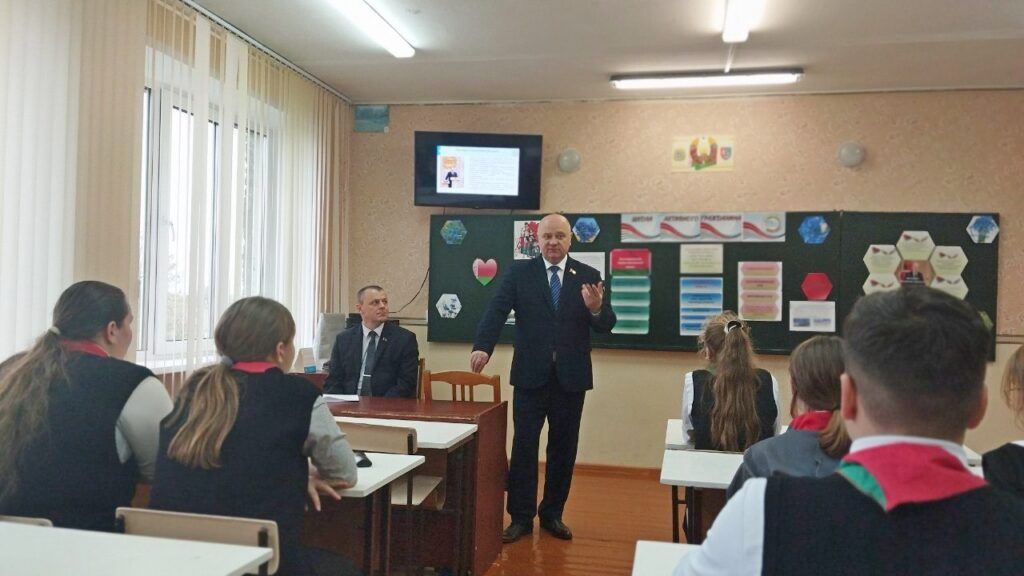В Кленникской школе Юрий Марецкий вместе с председателем сельсовета Александром Коршуном встретился с учениками. В рамках проекта «Школа активного гражданина» говорили о том, что значит быть достойным гражданином — уважать законы и чувствовать ответственность за страну. В конце встречи школьница подарила депутату пионерский галстук – депутат тут же его повязал и поблагодарил.