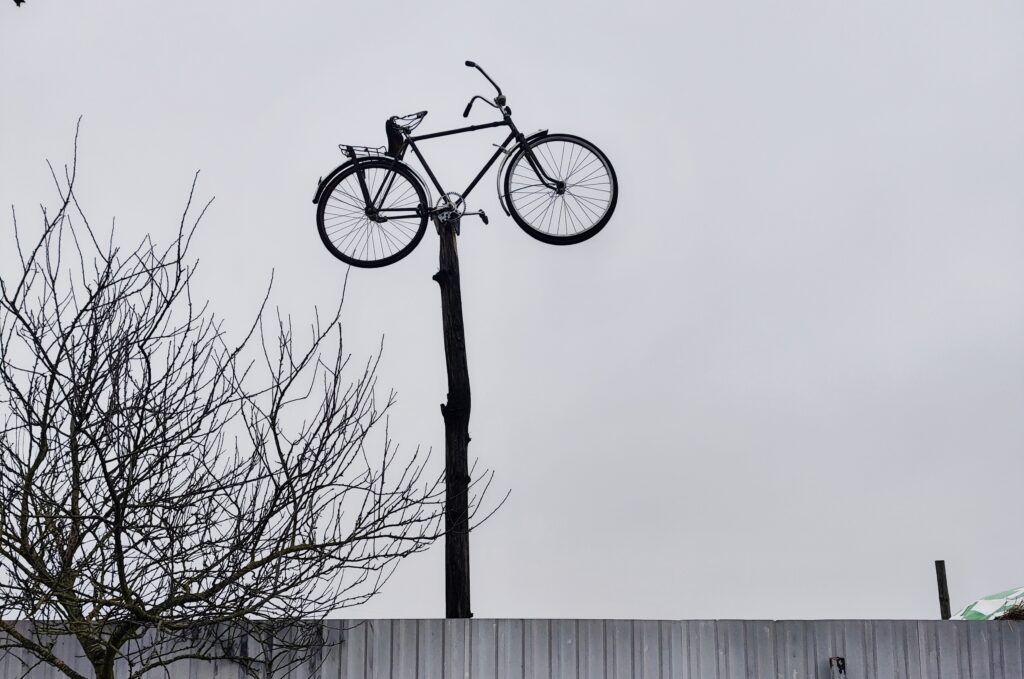 Кстати, тот велосипед сейчас занимает самое видное место в агроусадьбе. Михаил смастерил для него высокий столб, и ровер словно парит над «Хозяюшкой».