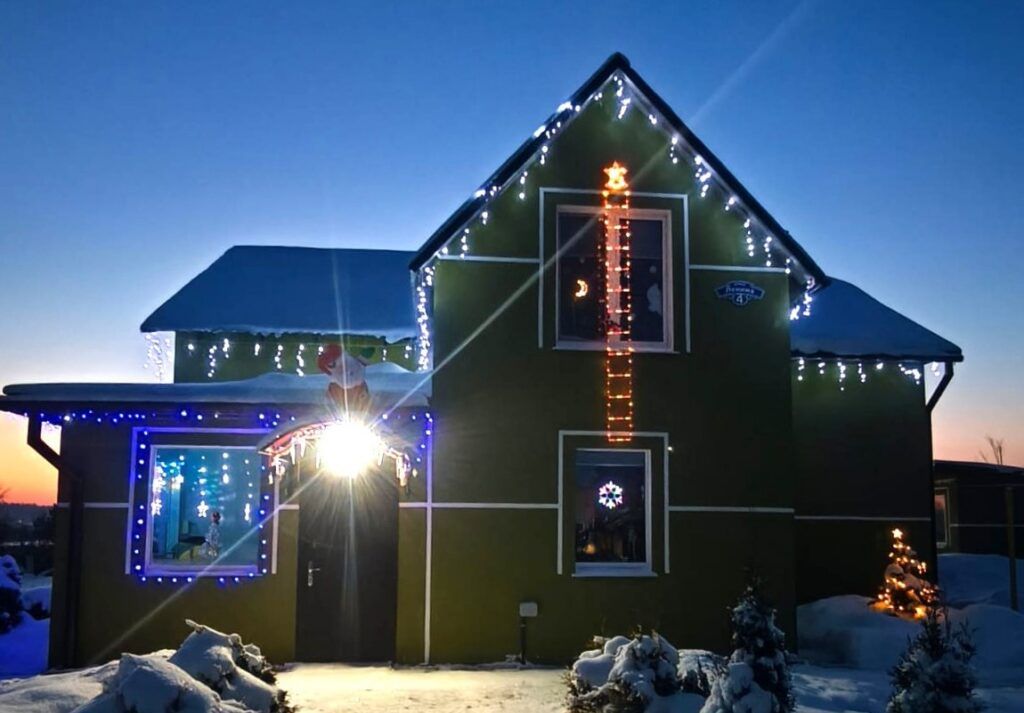 Идейным вдохновителем стала Ирина, функциональными исполнителями – мужская часть семейного коллектива. Домочадцы украсили двор – развесили гирлянды по периметру дома и гаража – еще в начале декабря.