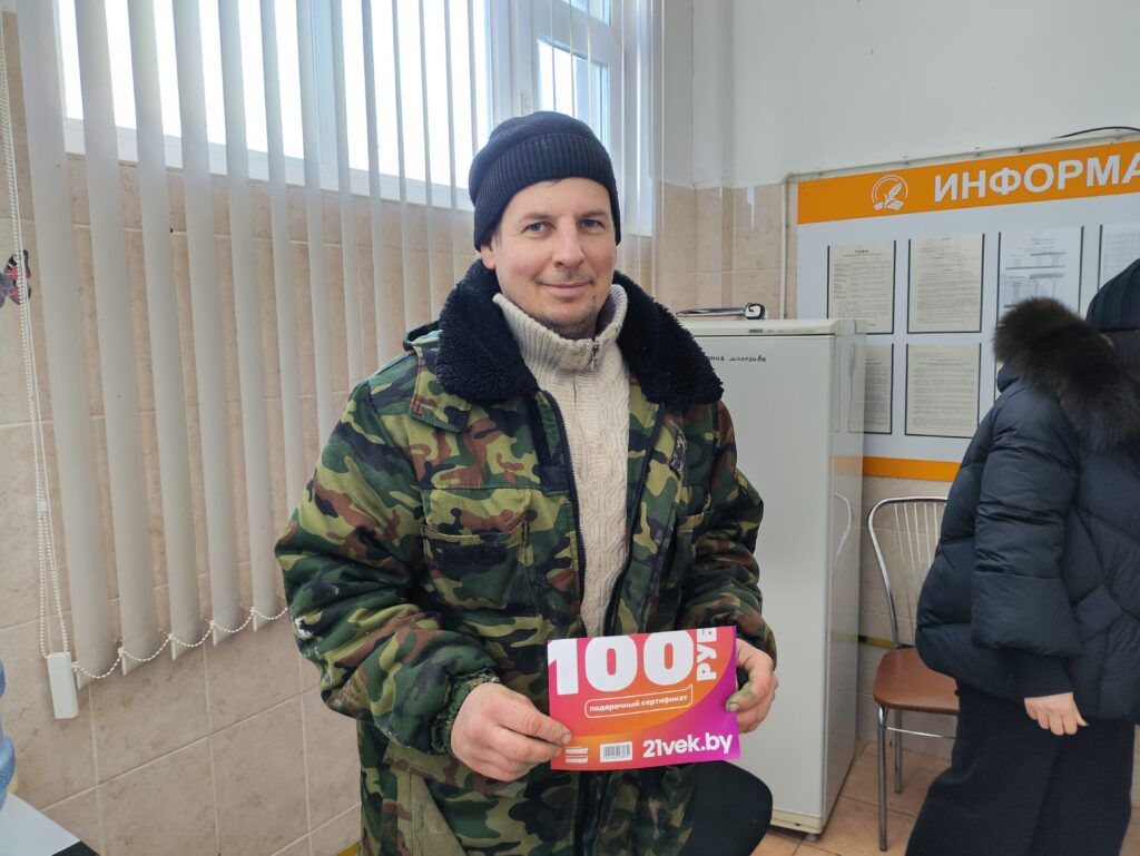Подарочный сертификат в онлайн-гипермаркет председатель профсоюзной первички «Озерицкого-Агро» Ольга Шиманович вручила бригадиру ферму Павлу Качура.