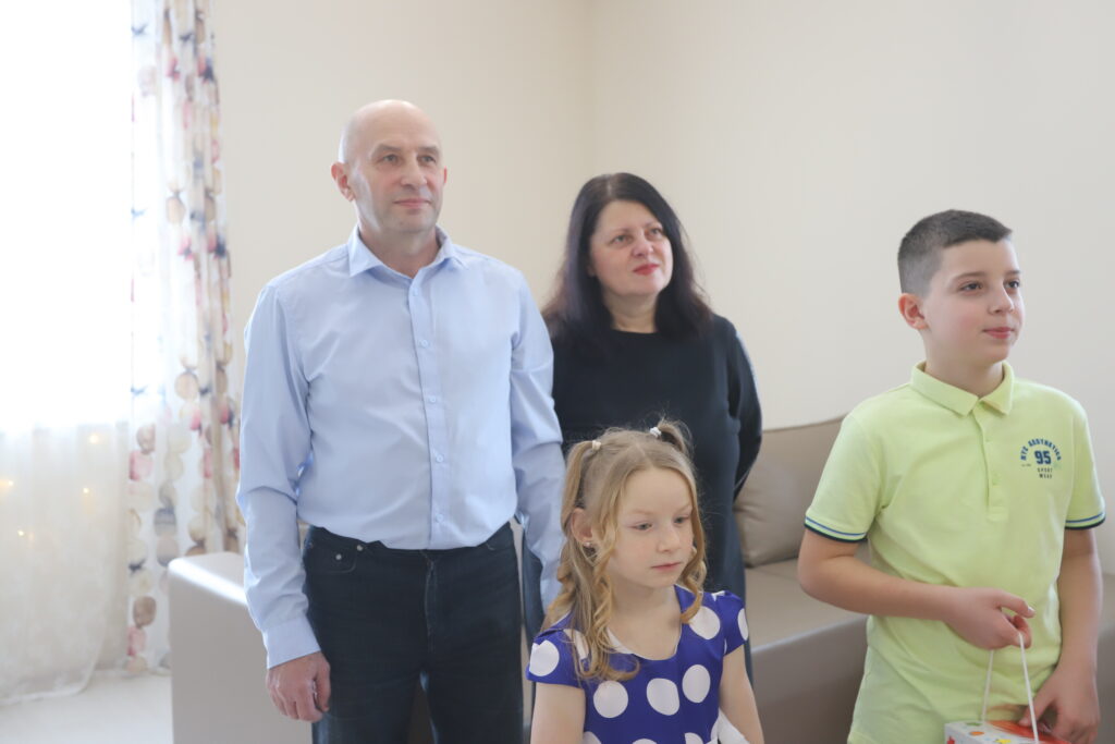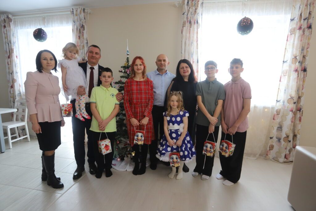 В рамках акции «Наши дети» Николай Парамонов вручил семье кухонный комбайн, а каждому ребенку — сладкие подарки.