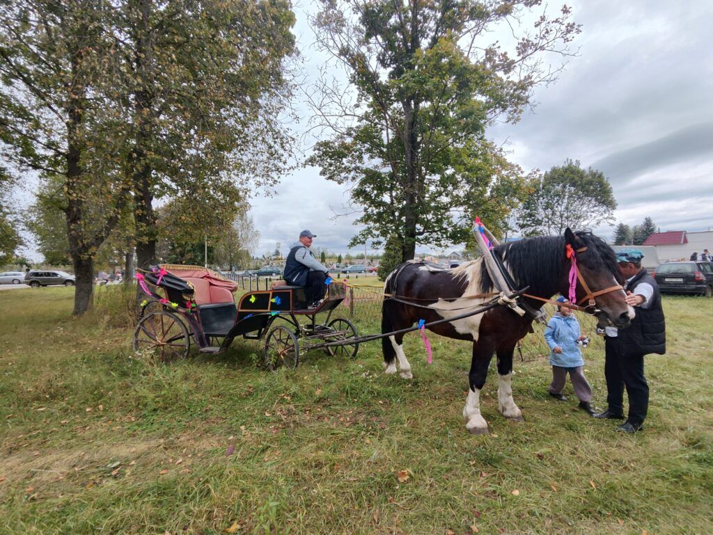 И вот недавно посчастливилось встретиться с героем снова. На ярмарке, прошедшей в агрогородке в конце сентября, он катал гостей на своем Малыше, который был запряжен в красивую карету.